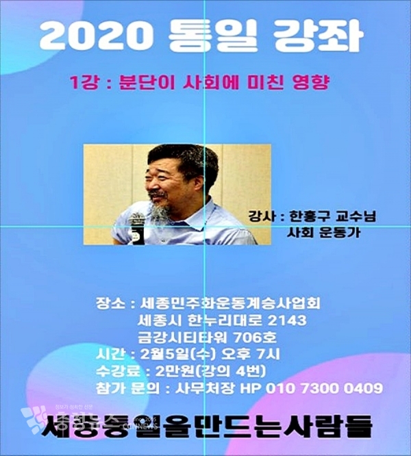 5일 오후 7시...'세종 통일을 만드는 사람들' 주관 2020 통일강좌