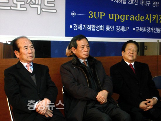 최 의장은 이어 "(대덕구는 현재) 인구가 점점 줄어가고 살림은 2007년 20억 차입, 2009년 90억을 차입하는 등 재정파탄 직전에 이르렀다"며 대덕구 발전을 이끌 새로운 지도자가 절실히 필요함을 역설했다.