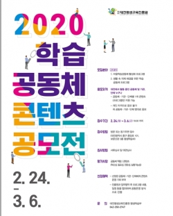 대전평생교육진흥원은 대전에서 활동 중인 공동체 및 기관‧단체를 대상으로“2020 학습공동체 콘텐츠 공모전”을 개최한다.