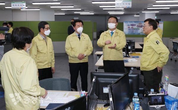 충남도의회 유병국 의장과 이종화 제2부의장은 4일 도청 내 위치한 코로나19 비상방역대책상황실을 위문했다. 유 의장과 이 부의장은 이날 감염병 대응 상황을 청취하고 방역활동에 고군분투하는 근무자들의 노고를 격려하며 위문품을 전달했다. 저작권자 © 충청뉴스 무단전재 및 재배포 금지 김윤아 기자 다른기사 보기 기사가 마음에 드셨나요? 충청뉴스 좋은 기사 후원하기 1,000원 3,000원 5,000원 10,000원 30,000원 50,000원 직접입력 비회원 약관동의하기 ※ 소중한 후원금은 더 좋은 기사를 만드는데 쓰겠습니다.