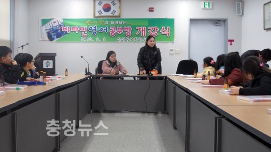 중구 산성동 복지만두레(회장 강길성)는 3일 어려운 가정형편으로 보충학습 기회가 적은 저소득 자녀들을 위해 무료 학습프로그램인 ‘원어민과 함께하는 비타민 영어공부방’ 개강식을 주민센터에서 가졌다.