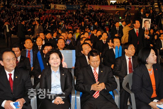 그래서 저에게 쏟아지던 그 많은 비판과 비난도 꿋꿋이 뚫고 견뎌 낼 수 있었습니다. 그리고 저와 우리 자유선진당은 해냈습니다. 작지만 강한 정당, 어떤 상황에서도 술수와 폭력을 쓰지 않는 정당, 대한민국의 모범이 되는 올곧은 정당으로 국민 앞에 섰습니다. 이 모든 성과가 바로 여러분, 당원 동지 여러분과 국민 여러분의 덕택입니다. 다시 한 번 진심으로 감사드립니다.