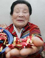강 할머니는 올해도 어김없이 만세운동 행사장을 찾아 행사장을 찾은 사람들에게 사탕을 쥐어준다.
