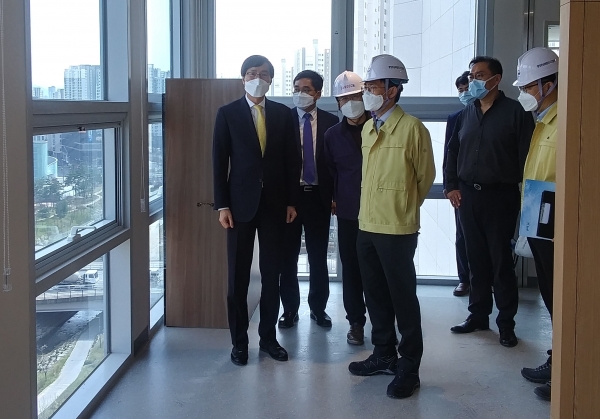 이문기 행정중심복합도시건설청장이 31일 올해 6월 개원을 앞두고 있는 세종 충남대병원 건립공사 현장을 찾아 코로나19 대응 및 안전관리 현황을 점검했다.