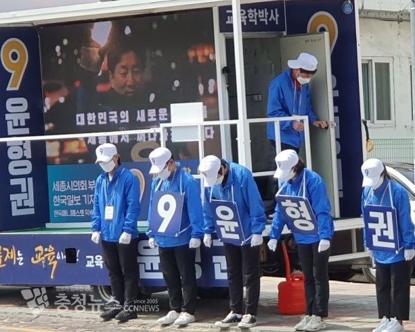 무소속 윤형권 후보는 점심시간 대평시장에서 "봄날의 새싹처럼 (윤형권의 존재감도)무럭무럭 싹이 자라고 있다"면서 "15일 돌풍을 기대한다"고 희망했다.