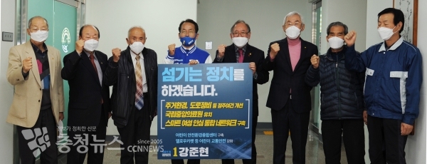 강준현 후보는 이날 대한노인회세종지회에서 장영 회장을 비롯한 지역 어르신이 참석한 가운데 ‘섬기는 정치를 하겠습니다’라는 슬로건으로 복지 및 안전 관련 정책을 소개했다.