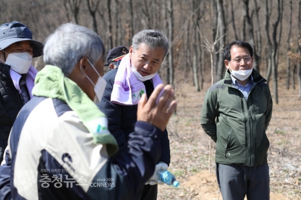 더불어민주당 홍성국 후보(세종시갑)가 제75회 식목일을 맞아 지역내 유휴지에서 식목 행사를 가졌다. 이날 행사는 코로나19에 따른 ‘사회적 거리두기’ 캠페인으로 인해 주민 관계자등 최소한의 규모로 진행됐다.