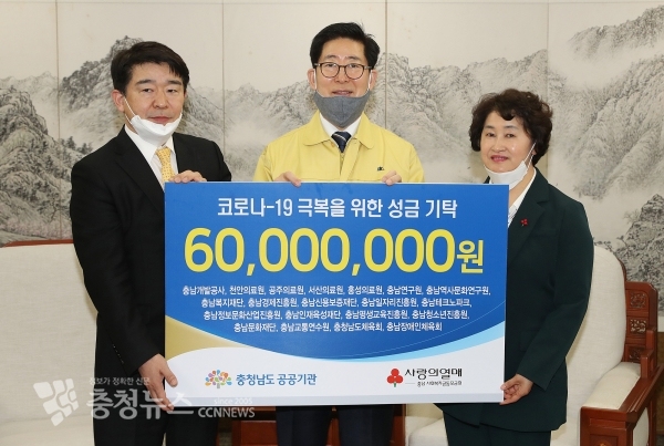 도는 기부 받은 성금을 충남 사회복지공동모금회에 전달해 코로나19 예방 및 치료를 위해 활용할 계획이다.