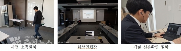 면접응시자는 자택 등 개별로 마련한 공간에서 개인별 컴퓨터와 웹캠을 활용해 온라인으로 진행하였다.