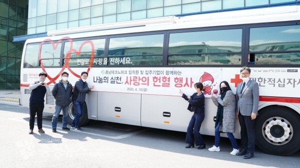 충남테크노파크(원장 이응기․이하 충남TP)는 10일 코로나19 극복 캠페인 일환으로 사랑의 헌혈 행사를 가졌다.