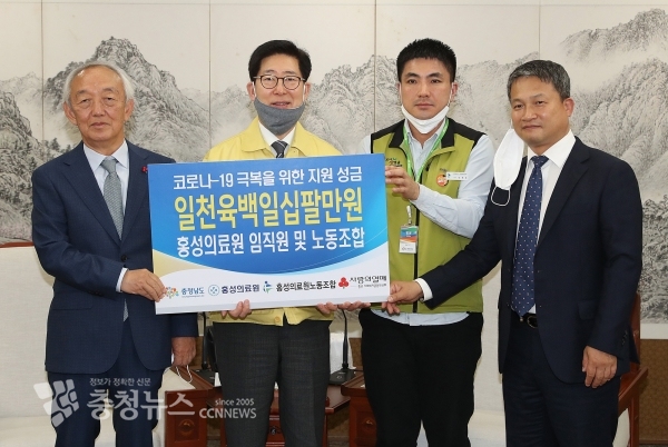 코로나19와 사투를 펼쳐 온 홍성의료원 임직원들이 성금을 기부해 훈훈함을 더하고 있다.