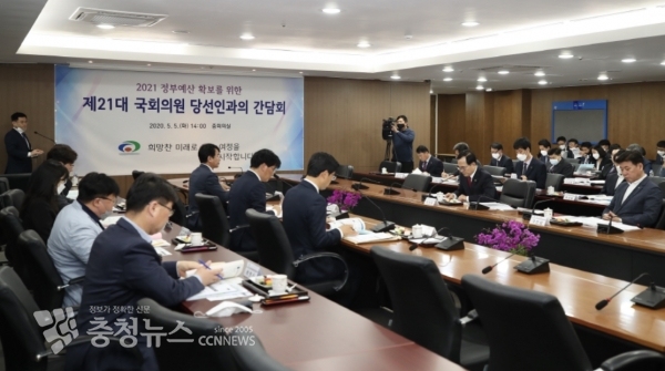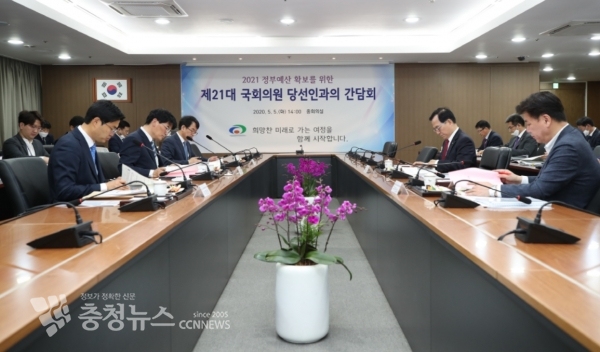 천안시가 5일 시청 중회의실에서 제21대 국회의원 당선인과 간담회를 열고 지역현안 해결과 국비예산 확보 등 새로운 도약을 위한 협력을 다짐했다.