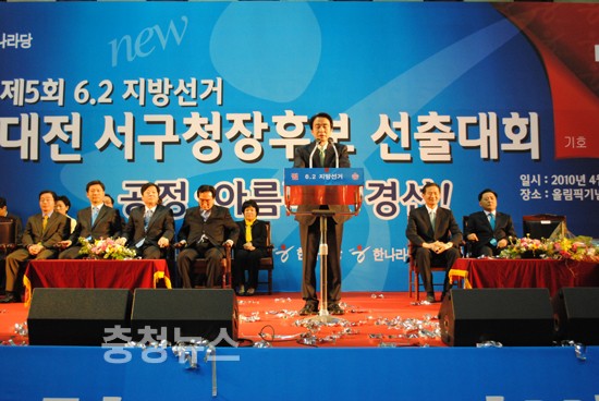 한나라당 대전시당은 10일 대전서구청장후보에 조신형 후보가 당원투표 40.1% 지지와 여론조사 결과 103표 (31.0%)를 지지를 얻어 총 414표로 여론조사결과와 상관없이 당선이 확정됐다.