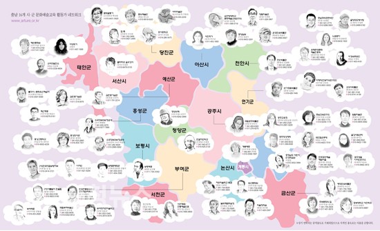 충남문화예술교육지원센터(센터장 안수영)에서는 충남 도내 16개 시․군의 문화예술교육 활동가들의 현황을 한 눈에 쉽게 볼 수 있도록 ‘인물 네트워크 지도’를 발간하고 13일 발간회를 갖는다.