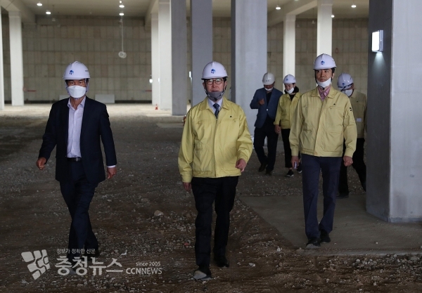 양승조 충남지사는 10일 천안시 서북구 소재 ‘올담에프에스’ 물류창고 신축공사 현장을 찾아 안전관리 실태를 점검했다.