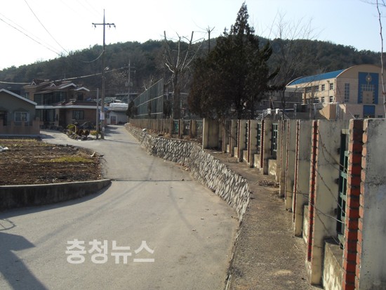 ▲ 공주중학교(무령왕릉 입구)담장허물기 前