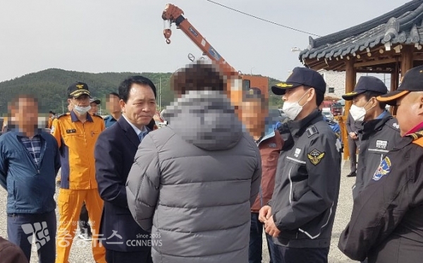 태안해경서장, 수색현장 찾은 성일종 국회의원, 실종자 가족에 수색진행상황 설명
