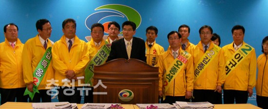 마지막으로 “민주당 충남도당 출마자들은 이번 지방선거에서 충청민의 선택을 받기 위해 사력 다할 것이고 그것이 행복도시를 지켜내는 길이고, 우리 지역뿐 아니라 나라를 위한 길이기 때문이다. 그리하여 오만방자함으로 수도권도 망치고 지역도 망치는 한나라당을 심판하고 충청의 자존심을 세울 것이다.”라고 했다.