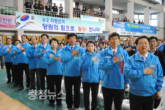 송병대 시당위원장은 격려사에서 지방선거에서 한나라당이 추천한 비젼과 능력있고 역량있는 후보를 당원동지들의 뜨거운 열정으로 성원해달라고 호소했다.