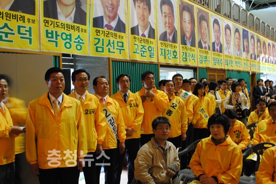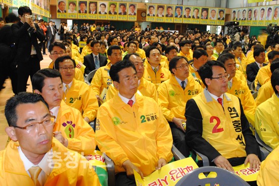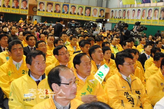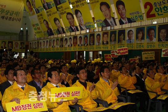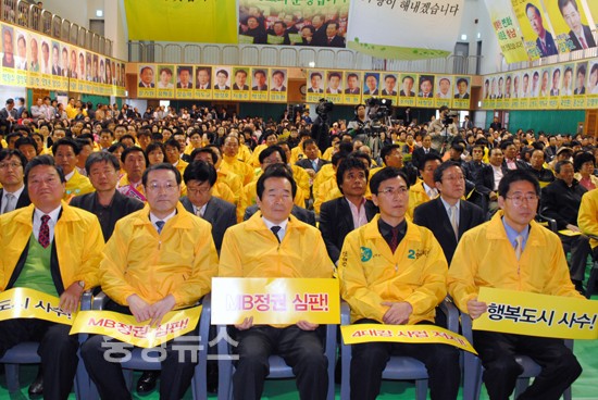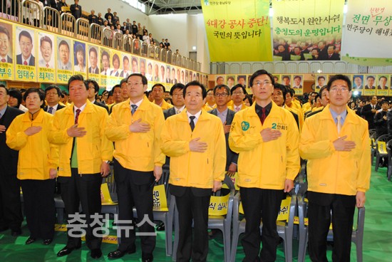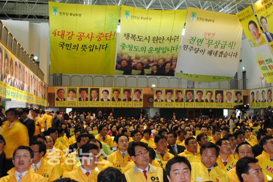 양승조충남도 선거대책위원장은 17석의 선진당으로 4대강공사중단,행복도시 원안사수를 지켜낼수 없다며 제일야당 민주당만이 세종시를 지키겠다고 지지를 호소했다 그는 이어 지역정당 정치를 끝장내고 민주당후보들을 압도적으로 지지할 수 있도록 당원들의 결의를 주문했다.