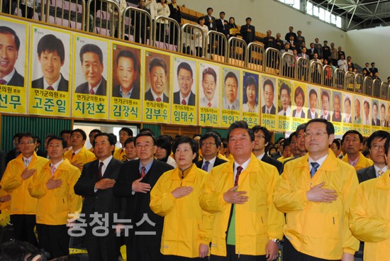 민주당 충남도당 선대위 출범식 및 공천자대회가 30일 오후 충남 연기군 농어민 문화체육센터에서 있었다.