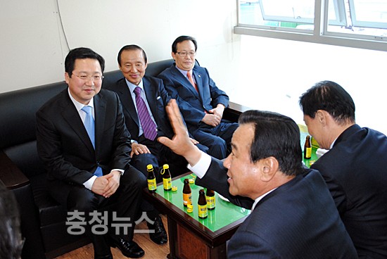 ▲ 이완구지사 강창희최고위원,이양희 전의원 이장우 청장이 환담을 나누고있다