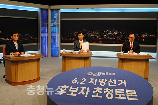 대전 MBC(박선자 국장)는 7일 오후 9시45분부터 60분동안 6,2지방선거를 앞두고 후보자들의 정책 검증을 위한 기획 생방송 충남도지사 후보자들에 대한 토론회를 가졌다.