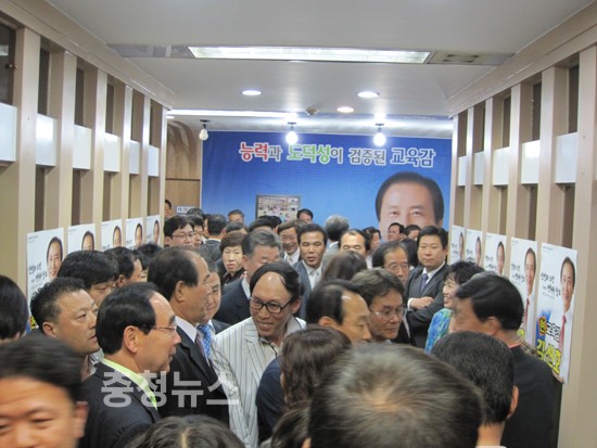 또, 교육감 후보에 도전하는 후보자들을 겨냥한 듯 "대전교육의 미래를 준비하기 위한 새로운 교육 패러다임과 인프라 구축으로 변화와 창조를 모색해야 하며,지금까지 설계하고 추진한 교육정책과 교육사업의 청사진을 완성시키기 위해서는 더 이상 시행착오나 연습을 할 겨를이 없다"고 강조했다.