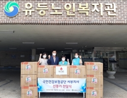 박명래 유등노인복지관 관장은 “국민건강보험공단 서부지사 임직원분에게 어르신들이 건강하게 여름을 보낼수 나눔을 베풀어 주심에 감사함“을 전하였다
