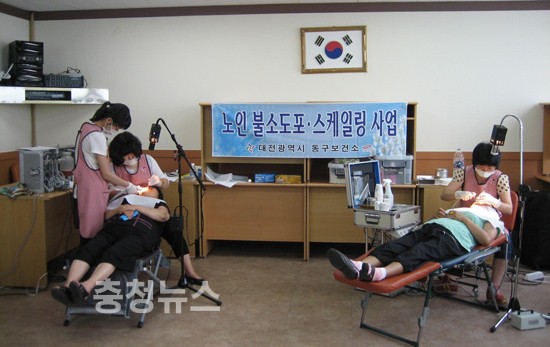대전 동구(구청장 이장우)는 23일 가양1동 주민센터 회의실에서 65세 이상 노인을 대상으로 불소도포 및 스케일링을 무료로 실시했다.