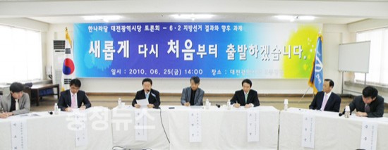 한나라당 대전광역시당은 25일(금) 오후2시, 당사 3층 강당에서 6·2지방선거 결과와 한나라당이 나아가야할 방향이라는 주제로 토론회를 가졌다.