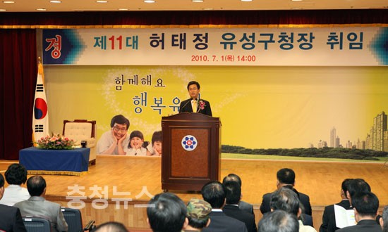 대전 유성구 허태정 제 11대(민선5기) 유성구청장이 1일 취임했다.