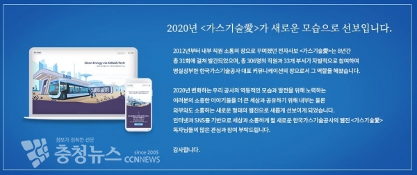 한편, 공사는 이번 웹진「가스기술愛」창간을 필두로 대외 홍보역할을 더욱 강화해 국민과의 쌍방향 소통을 통한 다양한 의견이 반영된 에너지 콘텐츠를 SNS 및 유튜브 등으로 전격 확대해 나갈 방침이다.