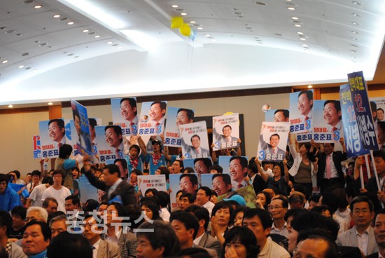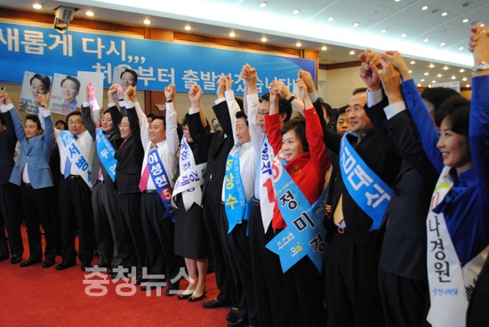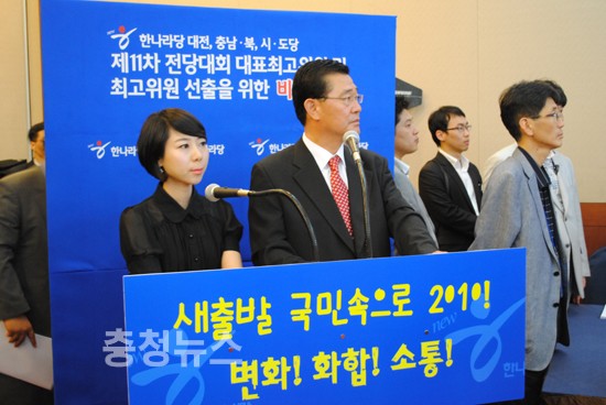 친박계 후보들은 하나같이 '세종시 논란'의 중심에 있었던 충청민심을 의식한 발언이 쏟아져 나왔다 이들후보는 "세종시 수정안을 찬성한 후보들은 당 지도부에 들어갈 자격이 없다"며 친이계에게 직격탄을 날렸다.