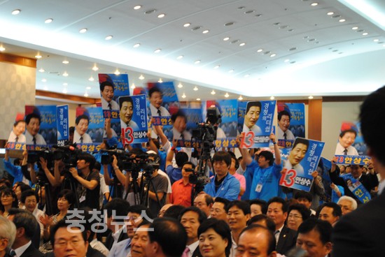 대전둔산동 오페라 컨벤션에서 열린 대전·충남·충북 정책비전발표회에서 안상수,홍준표후보로 양강구도를 형성하면서 후보들은'세대교체 쇄신' '친박친이간 화합'의 적임자임을 강조하며 표심잡기에 나섰다.