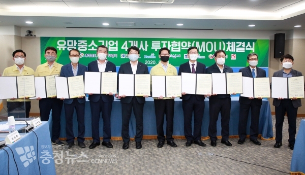 양승조 지사는 이날 협약식에서 “코로나19 장기화로 지역경기가 침체하고 있는 상황에서 이번 투자유치는 도민에게 큰 위로를 주는 낭보가 될 것”이라며 “이번 협약이 충남도는 물론, 4개 기업에도 새로운 활력을 주는 계기가 되길 기대한다”고 말했다.