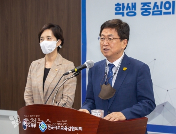 최교진 전국시도교육감협의회 회장은 “교원·학생·학부모가 교육의 주체로 우뚝 설 수 있도록 17개 시도교육청과 교육부는 힘을 모으고 단위학교를 적극적으로 지원할 것이라고 말했다.
