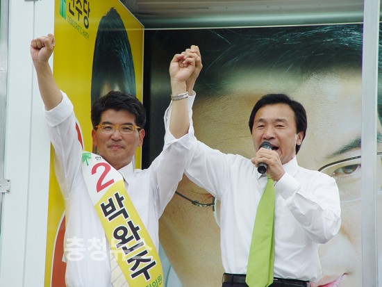 4대강 논란과 관련해서는 “지난 선거 우리 국민이 MB를 대통령에 뽑아준 것은 경제 살려달라는 것이었지 아름다운 금수강산을 마구 파헤치고 파괴할 권리를 위임한 것이 아니”라며 “박완주를 뽑아 이명박 정부의 4대강 사업은 안된다는 점을 분명히 보여줘야 한다”고 강조했다.