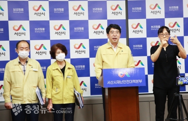 맹정호 서산시장은 20일 긴급 브리핑을 통해 “국내에서 코로나19 확진자가 대거 발생하고 있다”라며 “지금의 위기 극복을 위해서는 시민 여러분의 협조가 절실히 필요하다”고 밝혔다.