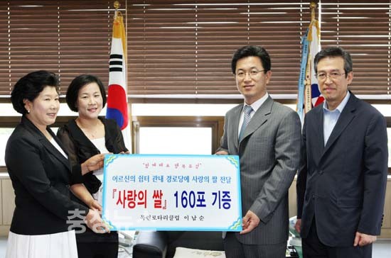 대전 유성구는 3680 목련로타리 클럽(회장 이남순)에서 19일 오전 유성구청을 방문하여 경로당 어르신들의 급식을 위해 써달라며 허태정 유성구청장에게 백미 160포(10kg)를 기탁했다고 밝혔다.