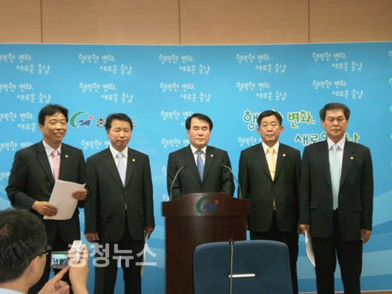 충청남도 도의회 교육의원 임춘근, 명노희, 김지철, 이은철,조남권 의원 등은 21일 오전 도청 브리핑룸을 방문해 교육위원장 선출과 관련해 무기한 등원거부의사를 표명해 파장이 예고되고 있다.