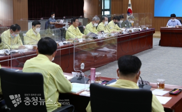 양승조 지사와 김용찬·이우성 부지사, 실·국·원장 등 40여 명이 참석한 가운데 연 이번 회의는 보고, 토론 등의 순으로 진행했다.