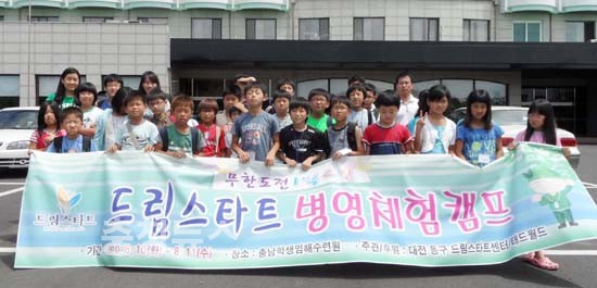 대전 동구(구청장 한현택)는 여름방학을 맞아 10일부터 1박 2일 일정으로 보령의 병영캠프 체험장에서 드림스타트 어린이 병영체험을 실시했다.