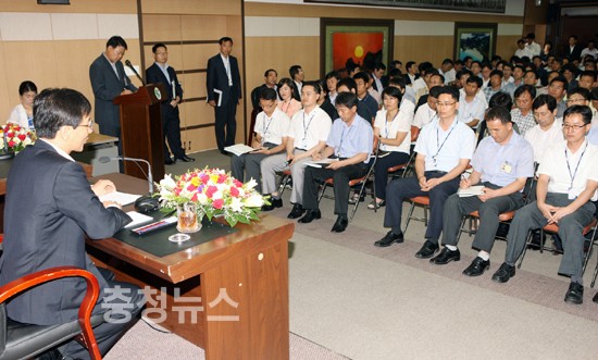 당진군청 대회의실에서 열린 “공무원과의 대화”에서는 150여명의 공직자가 참여한 가운데 군정과 도정을 활기차게 추진하는 견인차로써 역할을 수행하는 직원들의 노고를 위로했다.