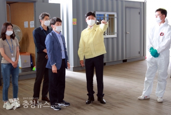 황 의장은 현장 격려를 통해 "벌써 몇 달째 본연의 업무와 함께 무더운 여름날 방호복 입고 코로나19를 최일선에서 막아내야 한다는 긴장감, 자칫하면 내가 감염될 수 있다는 무거운 압박감이 있을 텐데 미안함과 함께 정말 감사드린다"고 말했다.