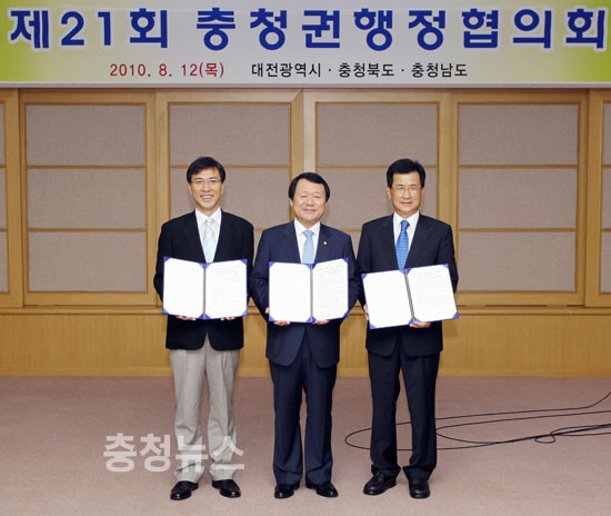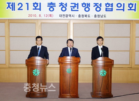 대전, 충북, 충남의 광역자치단체장들은 12일 오전 대전시청 대회의실에서 충청권 공동발전과 상생협력을 다짐하는 시도지사 행정협의회를 개최했다.