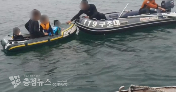 태안해경, 보트튜브 타고 표류하던 아빠와 아이 3명 구조