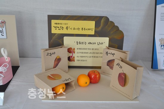 남수진 학생의 ‘재활 용지를 이용한 맛있는 속이 보이는 봉투 디자인’이라는 제목의 작품은, 바쁜 현대 생활 속에서 사람들이 보다 여유롭고 즐겁고 행복하게, 그리고 보다 맛있게 음식을 먹을 수 있었으면 하는 제작 의도를 담고 있다.
