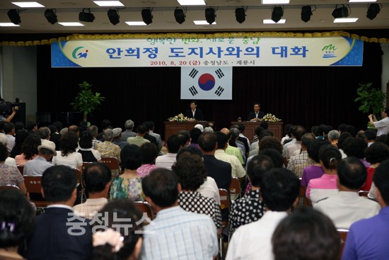 특히, 200여명의 각계각층 계룡 시민과의 만남에서 安지사는 “대화와 소통”을 강조하였으며 市와 道의 새로운 발전방안과 '행복한 변화, 새로운 충남'을 일구어 나가겠다는 도지사의 소신, 민선5기 도정비전 제시 등 시종 격의 없는 대화로 분위기를 이끌었으며, 남선지구 군인아파트 건립에 따른 계룡대 군인가족 이주대한 시민건의가 이루어졌다.