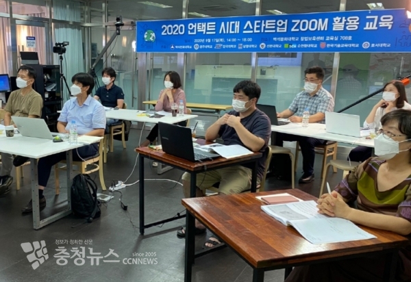 17일 천안시 동남구 청당동에 위치한 창업보육센터에서 충청남도권 7개 대학 창업보육센터와 연계해 ‘2020 언택트 시대 스타트업 ZOOM 활용 교육’이라는 주제로 특강을 실시했다.